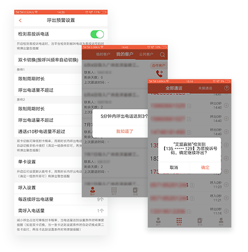 防投訴保護:自動檢測易投訴被叫號碼,主動警示,降低因投訴被 封號的幾率。