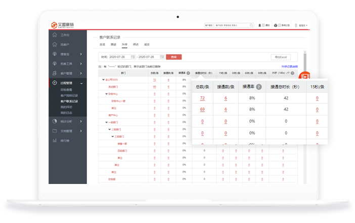 數據分析:以圖表呈現各種歷史外呼數據指標,一目了然, 輕松把握趨勢變化情況。