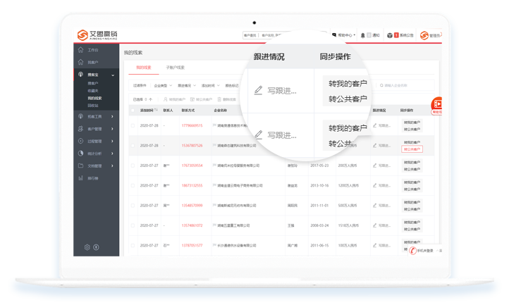 讓通過驗(yàn)證的銷售線索自動轉(zhuǎn)成客戶進(jìn)入CRM,利用CRM的客戶管理功能實(shí)現(xiàn)客戶的后續(xù)跟進(jìn)成單,降低銷售使用成本,實(shí)時同步跟進(jìn)信息,實(shí)現(xiàn)銷售閉環(huán)。
